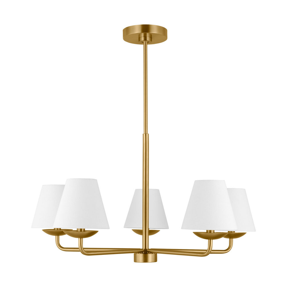The Drew & Jonathan Albion series is the true definition of traditional meets contemporary. Cone-shaped fabric lampshades and sleek sweeping arms create a visually appealing look that adds a touch of elegance to your space. It is made of steel and features a classic silhouette with angled arms branching from a central rod. Each arm is topped with a candle-style sconce for 60W candelabra bulbs (sold separately), while small fabric drum shades diffuse light for a warm glow.