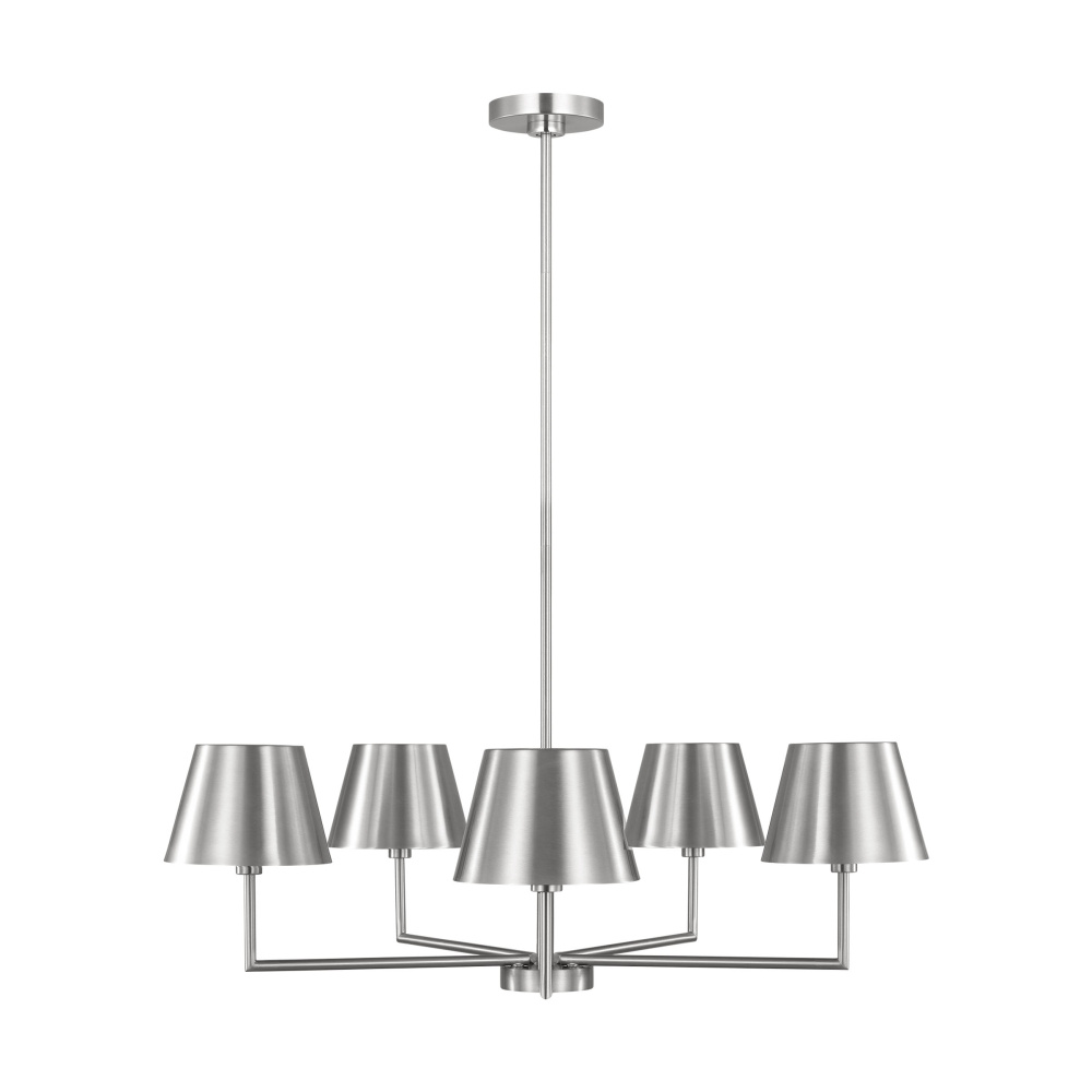 Designed with versatility in mind, the Ender series by Drew & Jonathan offers clean lines that will enhance any interior. The transitional profile is updated with modern metal shades that create a contemporary look. This chandelier will illuminate kitchens and dining rooms.